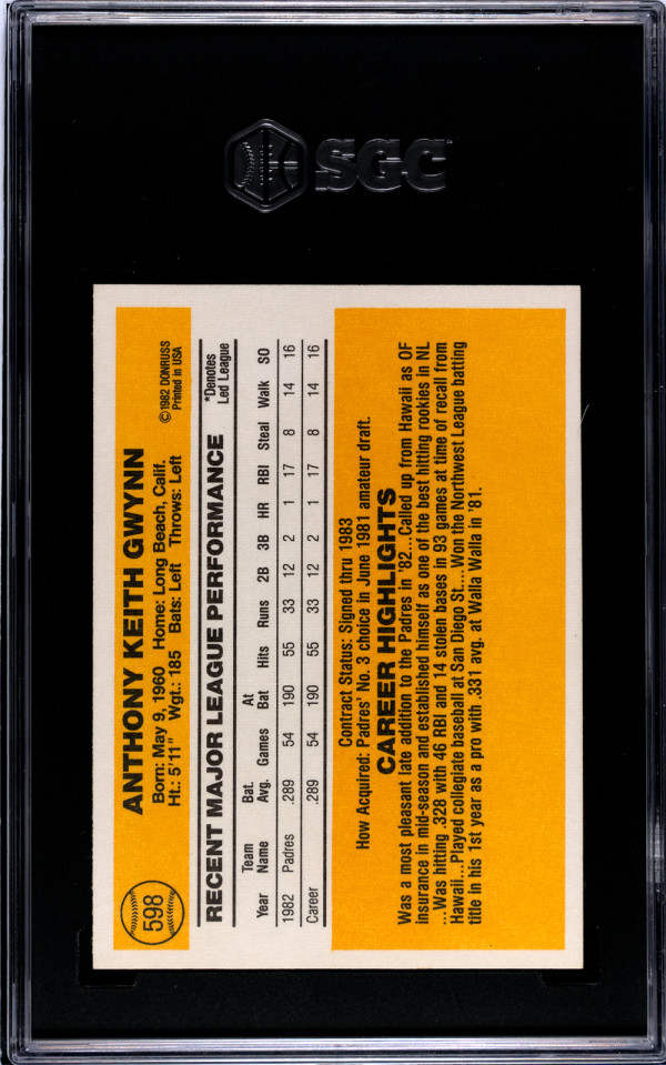 Tony Gwynn RC - SGC 9 - 1983 Donruss #598