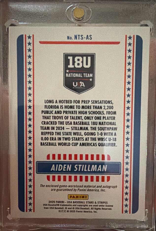 2025 USA Stars and Strips Aiden Stillman Patch Auto /10