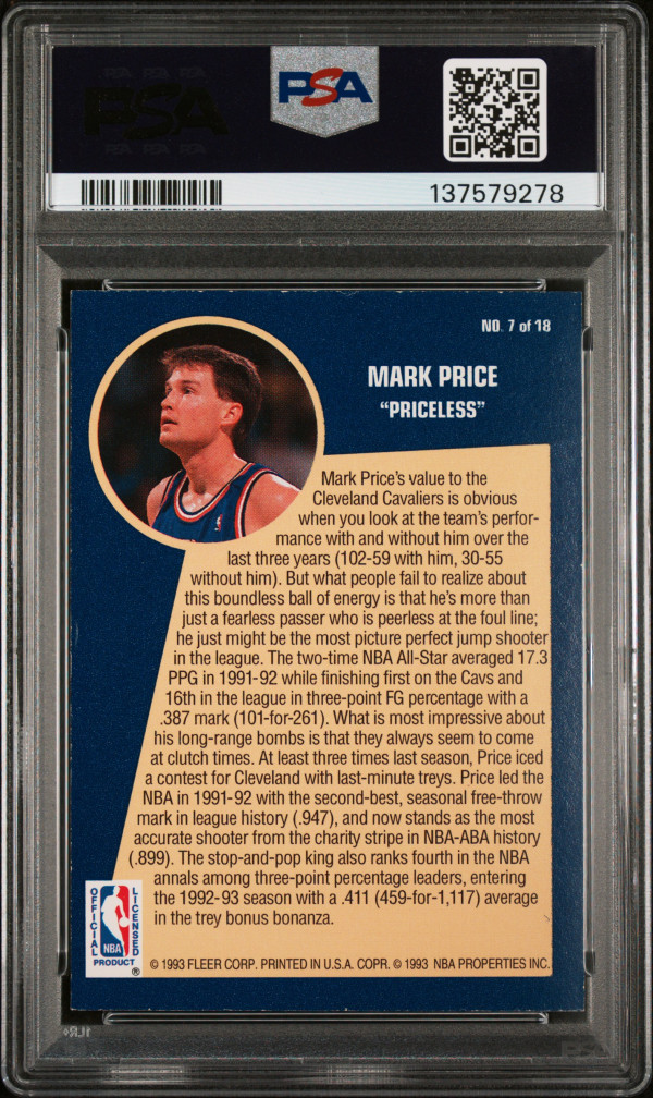 You are purchasing a 1992 Fleer Sharpshooter Mark Price #7 PSA 7. You will receive the exact item in the photographs. Thank you for looking.