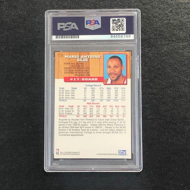 This listing features a 1993 SkyBox #178 Mario Elie, professionally PSA authenticated.