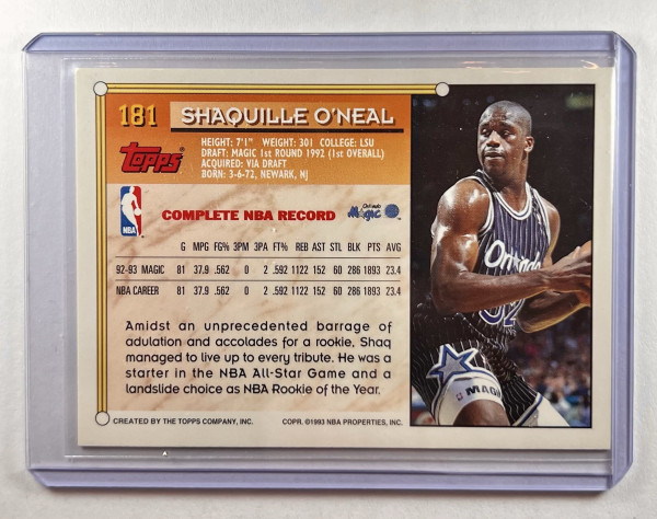 1993-94 Topps #181 Shaquille O'Neal Orlando Magic
