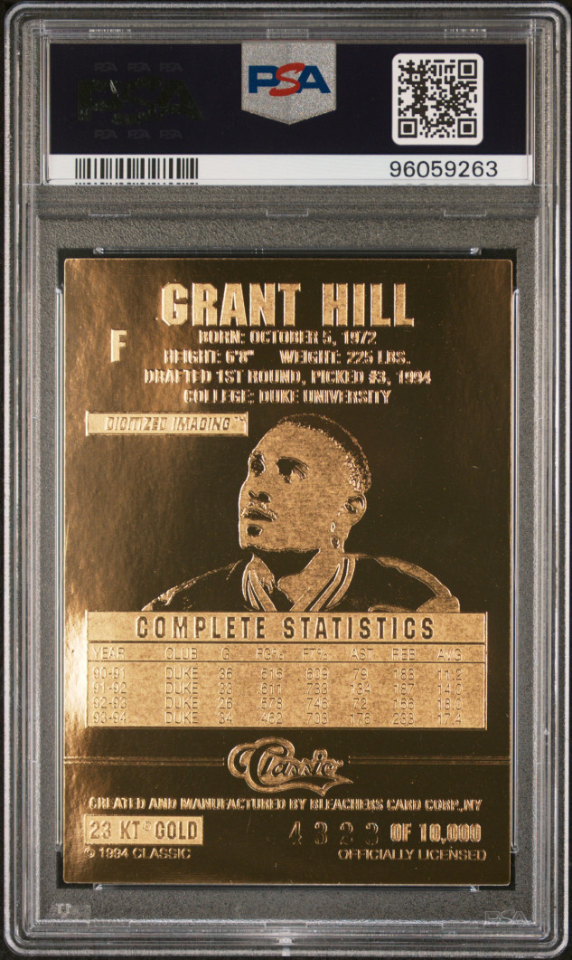 1994 Bleachers Grant Hill Classic 23K Gold /10000 PSA 9 (Pop 4, 1 Higher)