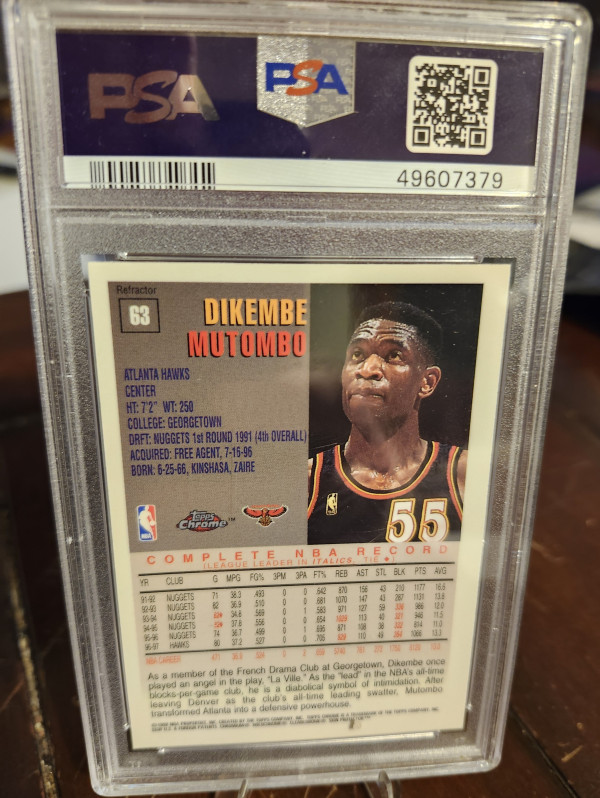 1997 TOPPS CHROME DIKEMBE MUTOMBO REFRACTOR PSA 9. POP 5!!!