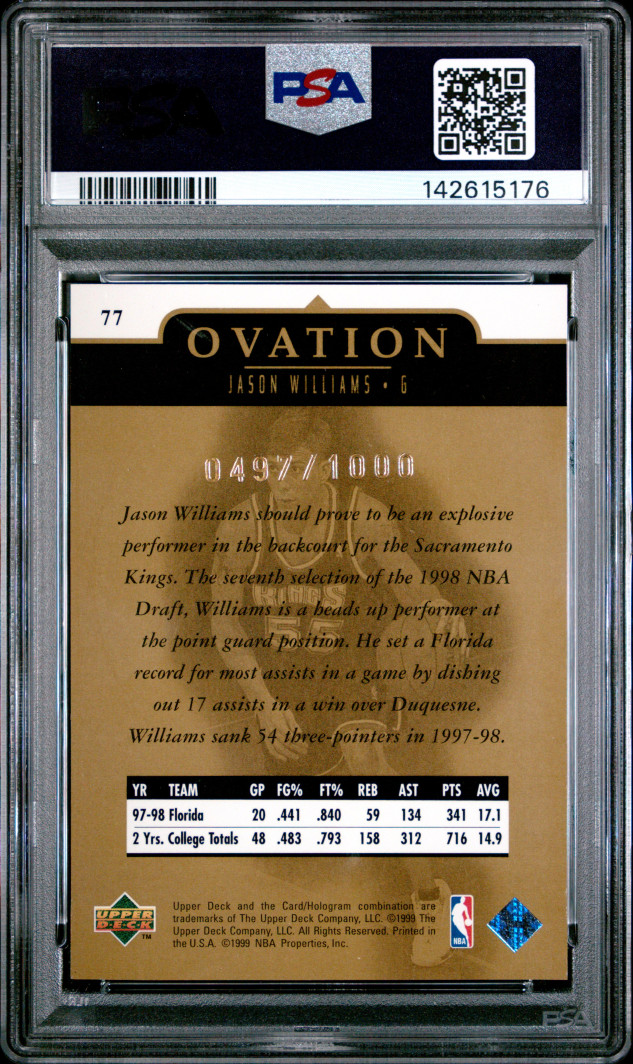 Cards from the 1998 Ovation set are notoriously tough to achieve high grades on. This one is serial numbered 0497/1000. Recently graded.