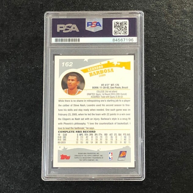 This listing features a 2005 Topps #162 Leandro Barbosa, professionally authenticated.