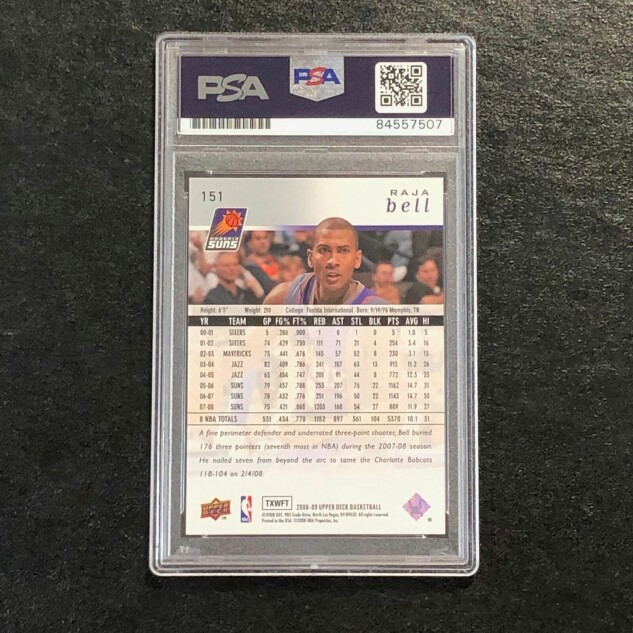This listing features a 2008-09 Upper Deck #151 Raja Bell, professionally authenticated.