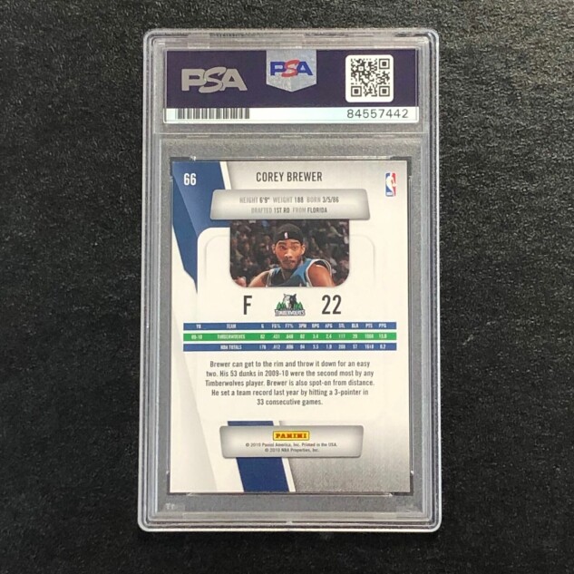 This listing features a 2010-11 Panini #66 Corey Brewer, professionally PSA authenticated.