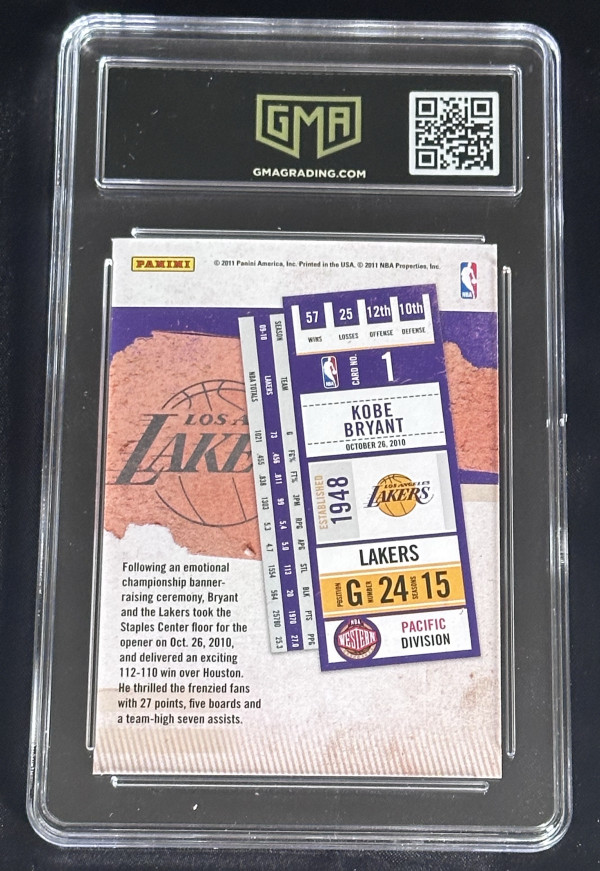2010-2011 Panini Playoff Contenders ‘Season Ticket’ Kobe Bryant, card #1. GMA Mint 9