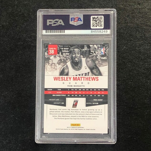 This listing features a 2012-13 Panini #38 Wesley Matthews, professionally PSA authenticated.