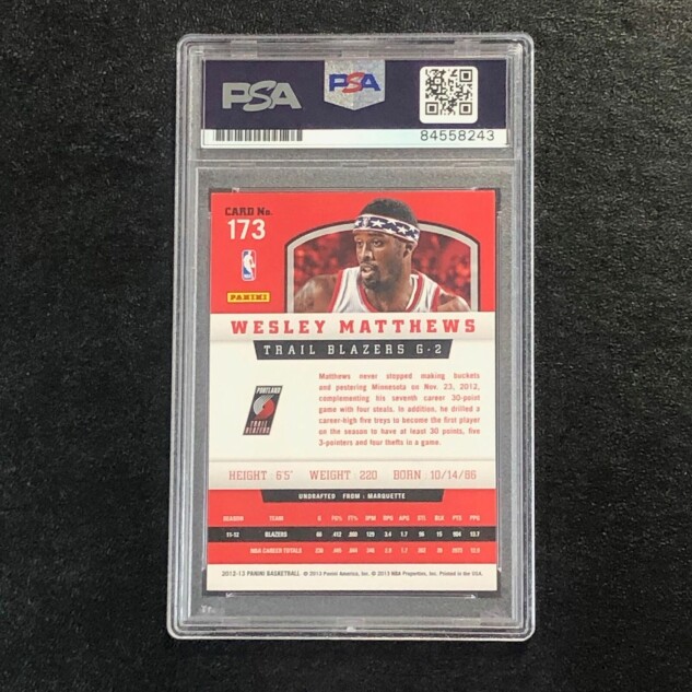 This listing features a 2012-13 Panini Basketball #173 Wesley Matthews, professionally PSA authenticated.