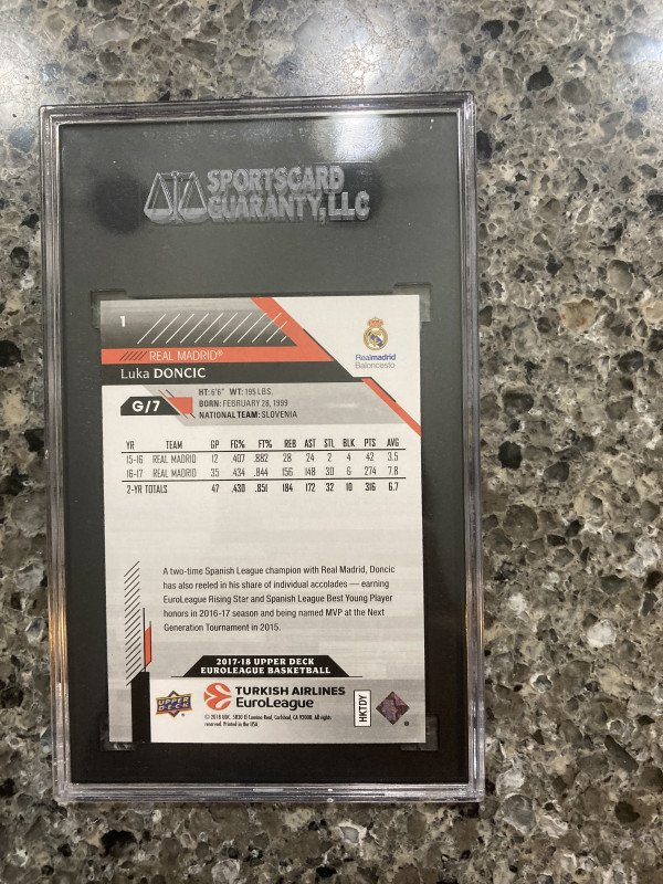 2017-18 upper deck euroleague Luka Doncic exclusives /100 pre-rookie sgc 9