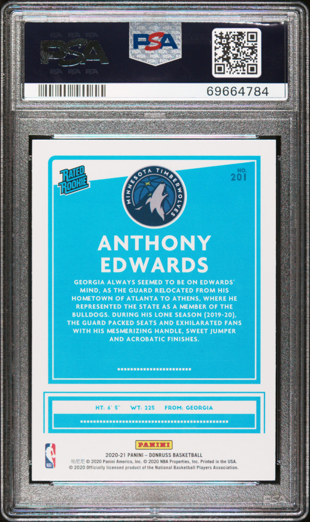 2020 Panini Donruss Anthony Edwards Orange Laser PSA 9