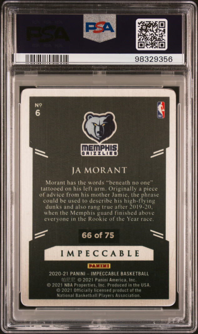 2020 Panini Impeccable Stainless Stars Ja Morant Stainless Stars-Blue /75