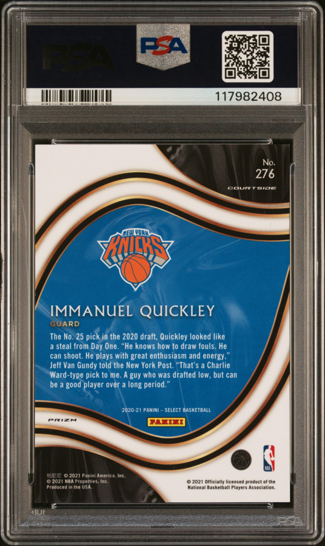 You are purchasing a 2020 Panini Select Immanuel Quickley #276 PSA 10. You will receive the exact item in the photographs. Thank you for looking.