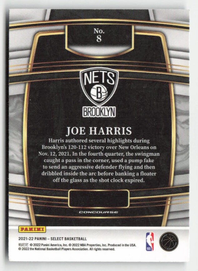You are purchasing a 2021-22 Panini Select Joe Harris #8. You will receive the exact item in the photographs. Thank you for looking.