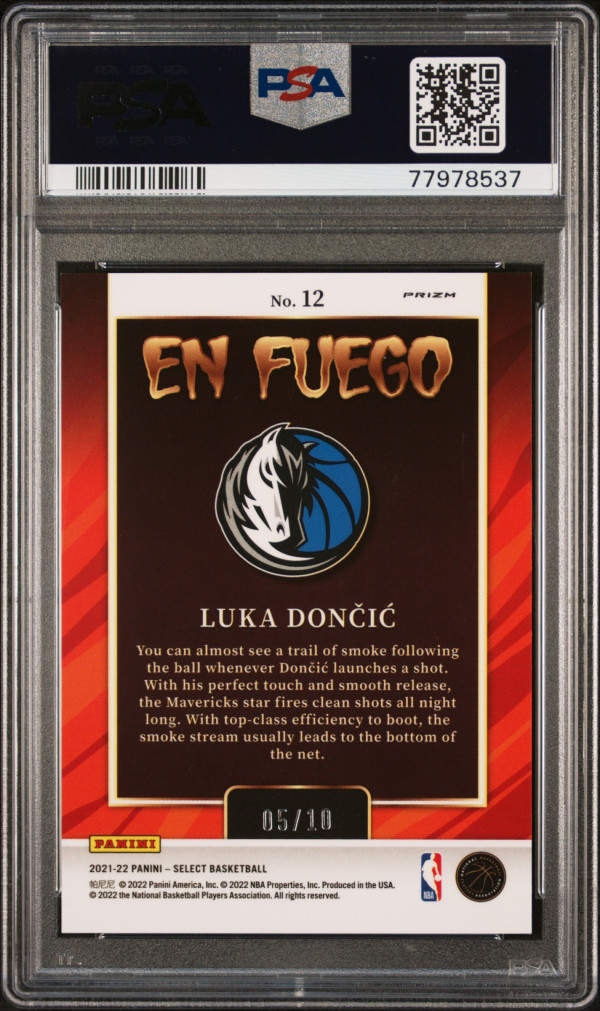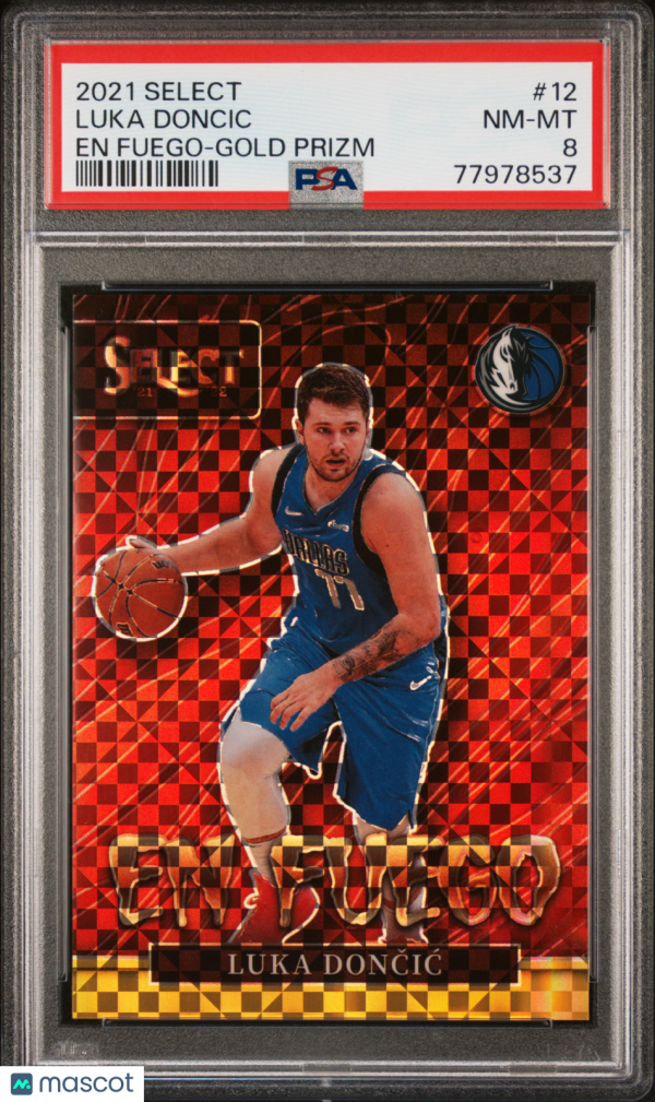 You are purchasing a 2021 Panini Select EN Fuego Luka Doncic #12 Gold Prizm /10 PSA 8. You will receive the exact item in the photographs. Thank you for looking.