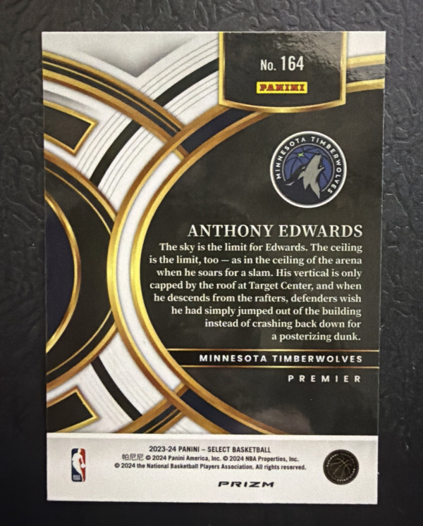 2023-24 Panini Select - Premier Level Anthony Edwards #164 Blue Cracked Ice...