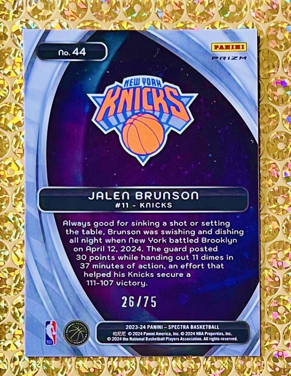 2023-24 Panini Spectra Titan #44 Jalen Brunson Cosmic Green Prizm /75