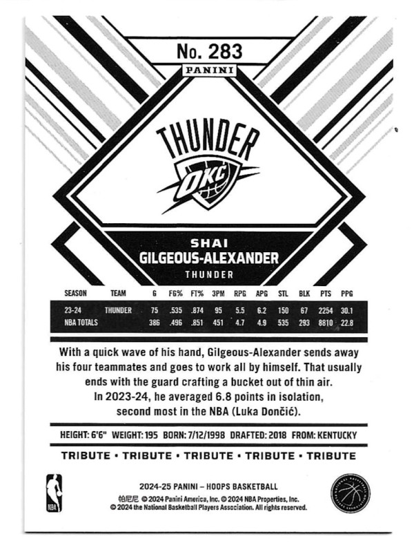 2024-25 Hoops #283 Shai Gilgeous-Alexander - Oklahoma City Thunder