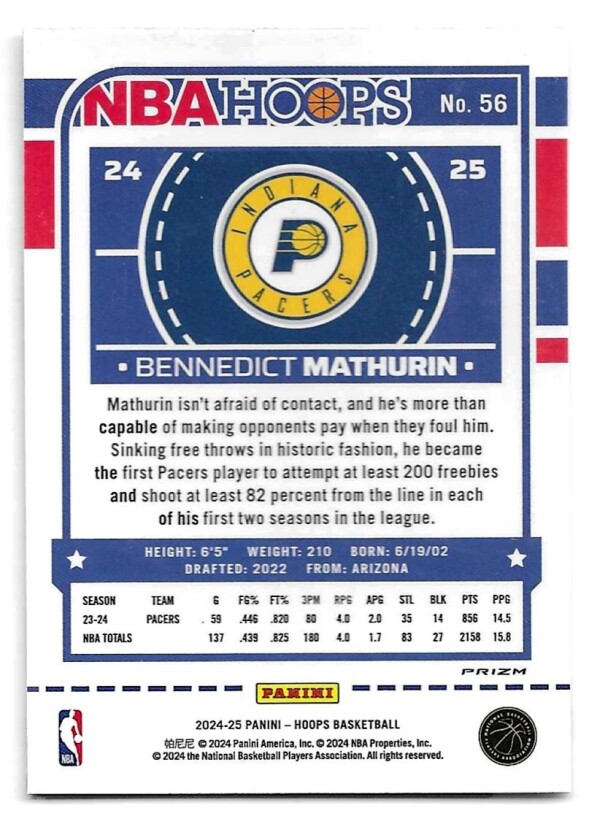 2024-25 HOOPS PREMIUM PRIZMS WINTER #56 BENNEDICT MATHURIN