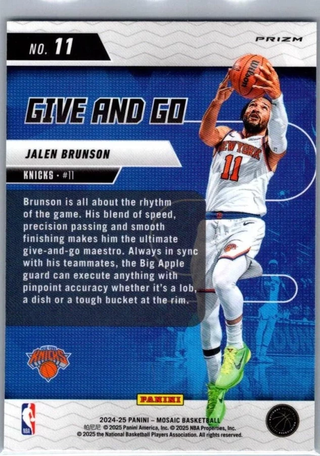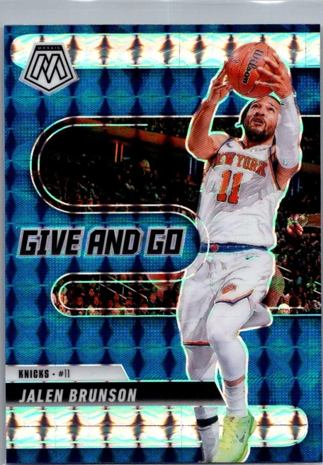 This is a nice example of a 2024-25 Panini Mosaic #11 Jalen Brunson Give and Go Mosaic