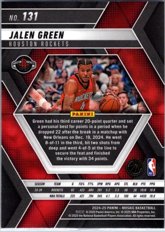 This is a nice example of a 2024-25 Panini Mosaic #131 Jalen Green