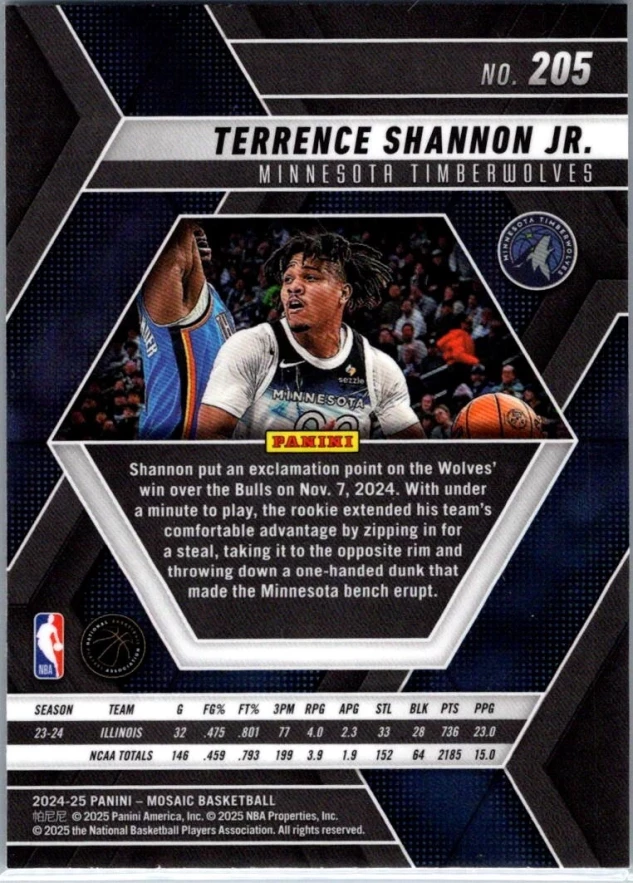 This is a nice example of a 2024-25 Panini Mosaic #205 Terrence Shannon Jr.