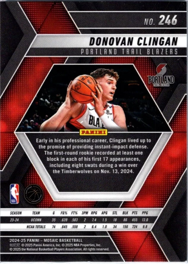 This is a nice example of a 2024-25 Panini Mosaic #246 Donovan Clingan
