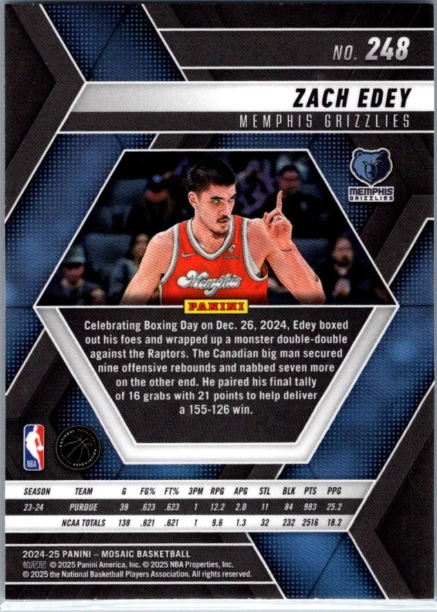 This is a nice example of a 2024-25 Panini Mosaic #248 Zach Edey