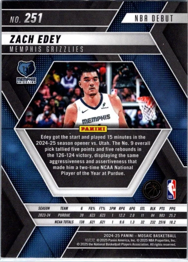 This is a nice example of a 2024-25 Panini Mosaic #251 Zach Edey