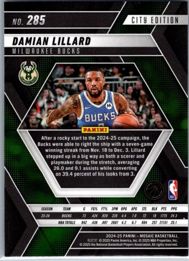 This is a nice example of a 2024-25 Panini Mosaic #285 Damian Lillard