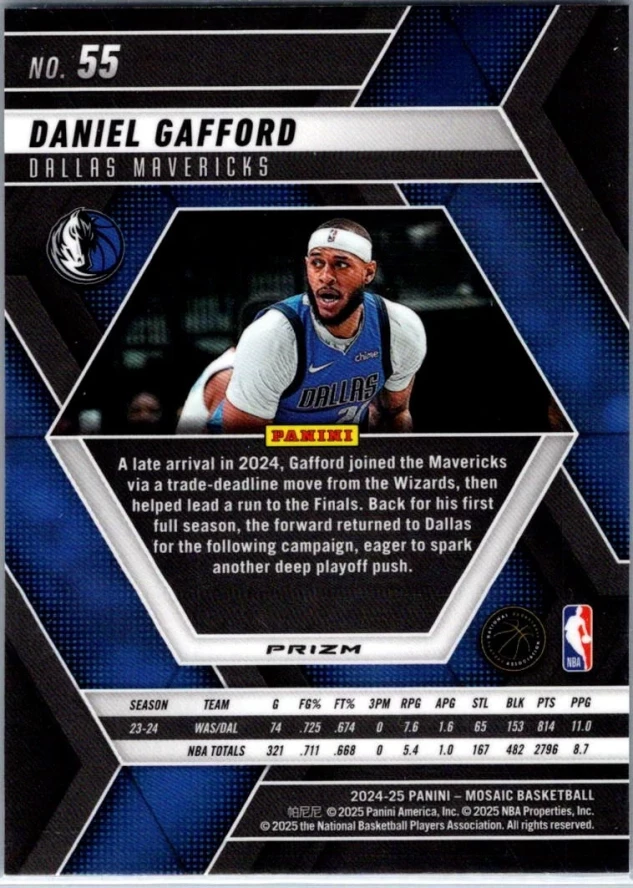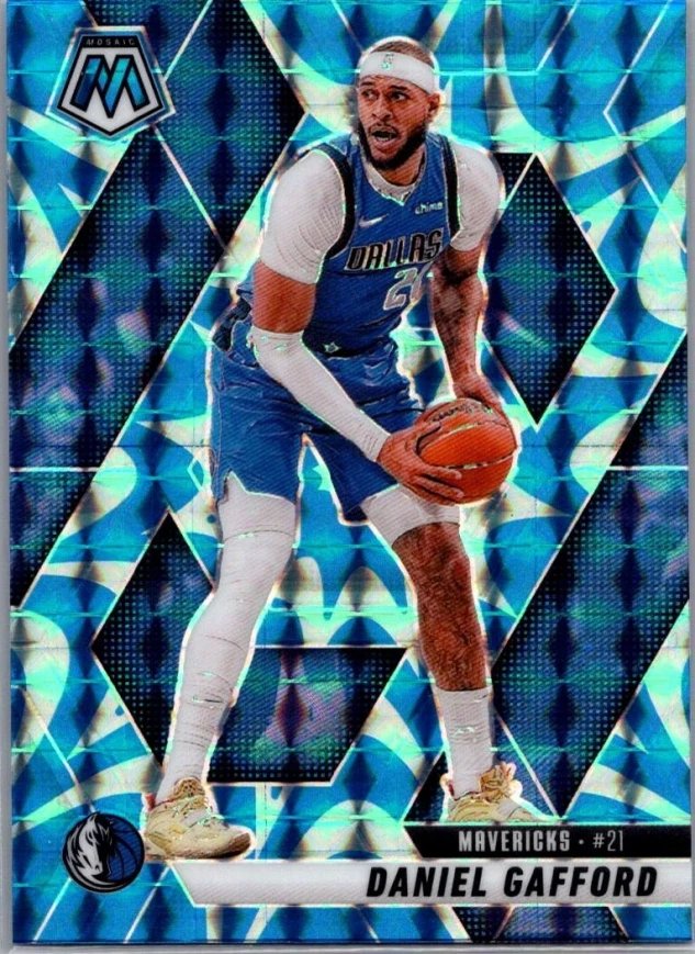 This is a nice example of a 2024-25 Panini Mosaic #55 Daniel Gafford Reactive Blue Mosaic
