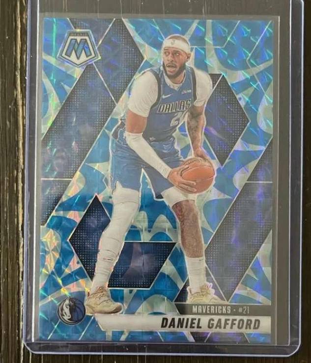 This is a nice example of a 2024-25 Panini Mosaic - Reactive Blue Mosaic #55 Daniel Gafford