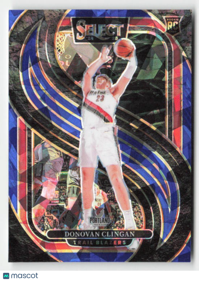You are purchasing a 2024-25 Panini Select Donovan Clingan #199 Blue Cracked Ice Prizm RC. You will receive the exact item in the photographs. Thank you for looking.