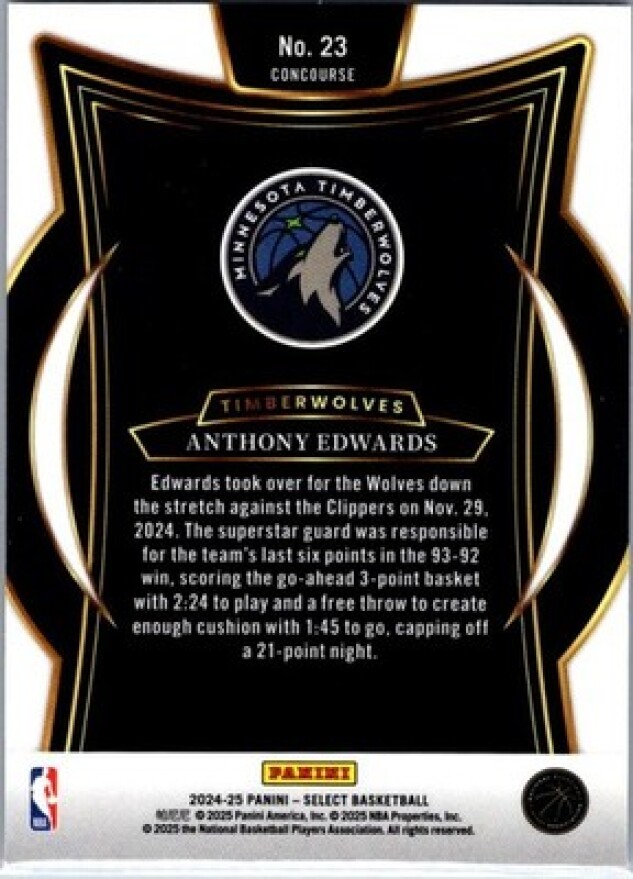 This is a nice example of a 2024-25 Panini Select #23 Anthony Edwards Blue (Retail)