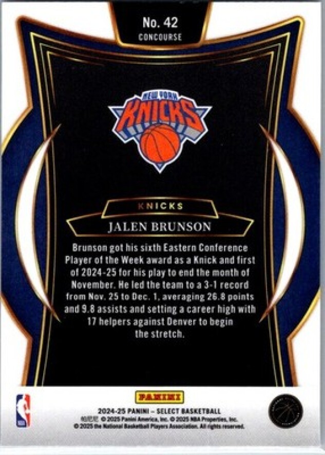 This is a nice example of a 2024-25 Panini Select #42 Jalen Brunson