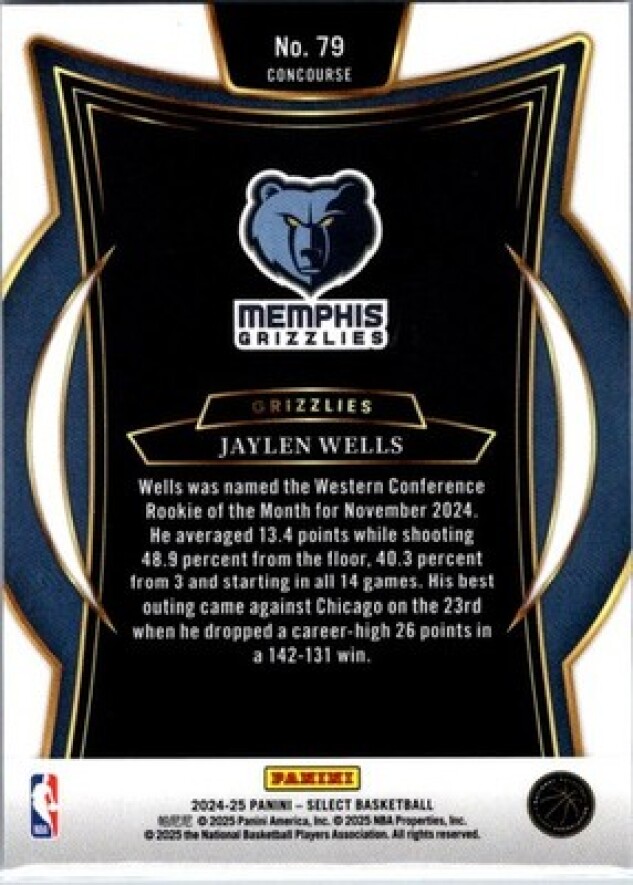 This is a nice example of a 2024-25 Panini Select #79 Jaylen Wells Blue (Retail)
