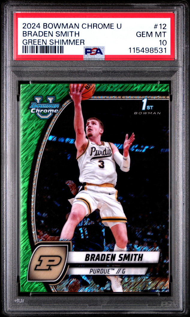 2024 Bowman Chrome University Braden Smith Green Shimmer PSA 10 💎