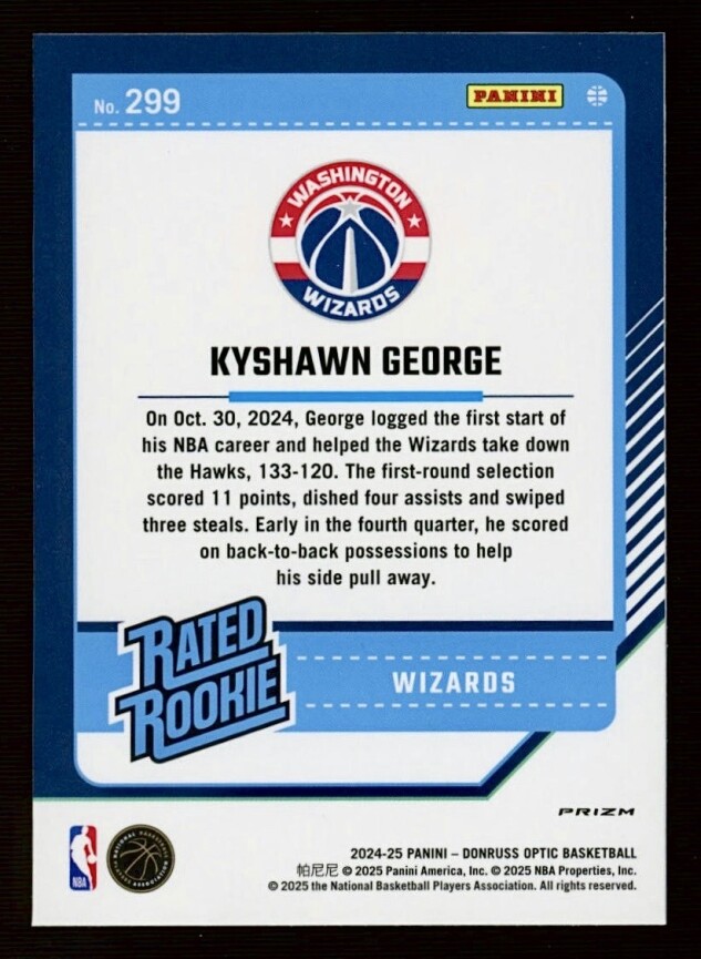 2024 Donruss Optic - Kyshawn George #299 RATED ROOKIE True Dragon Choice Prizm SSP WIZARDS Case Hit