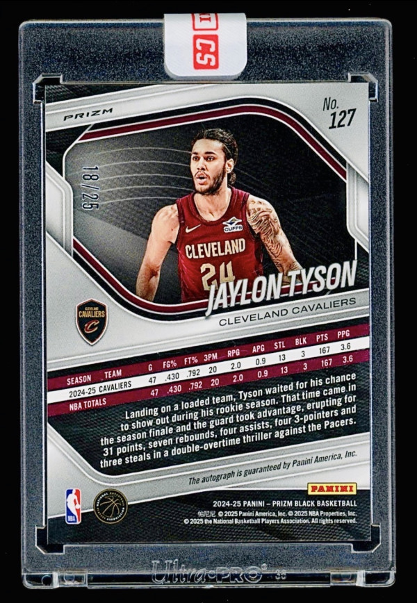 2024 Panini Prizm Black - Jaylon Tyson #127 TRUE ROOKIE AUTOGRAPH FOTL BLUE SHIMMER RC SSP TRUE BASE PARALLEL AUTO /25 Cavs