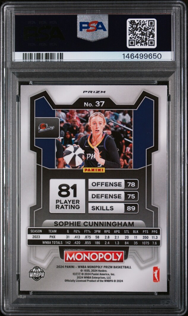 2024 Panini Prizm WNBA Monopoly SOPHIE CUNNINGHAM Rare SILVER HOLO PRIZM #37 - GRADED PSA 10 GEM MINT