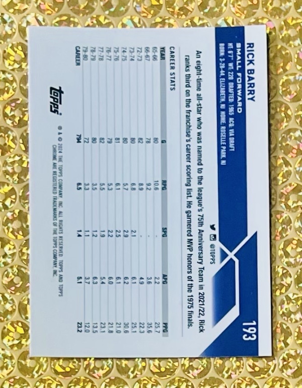 2024 Topps Chrome #193 Rick Barry Green Refractor /99