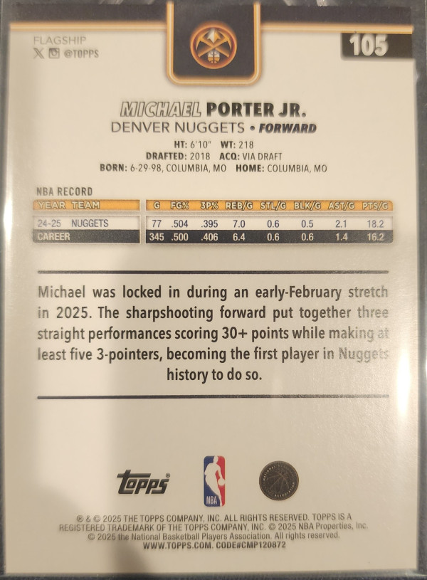 2025-26 Topps Basketball Michael Porter Jr Blue Sparkle
