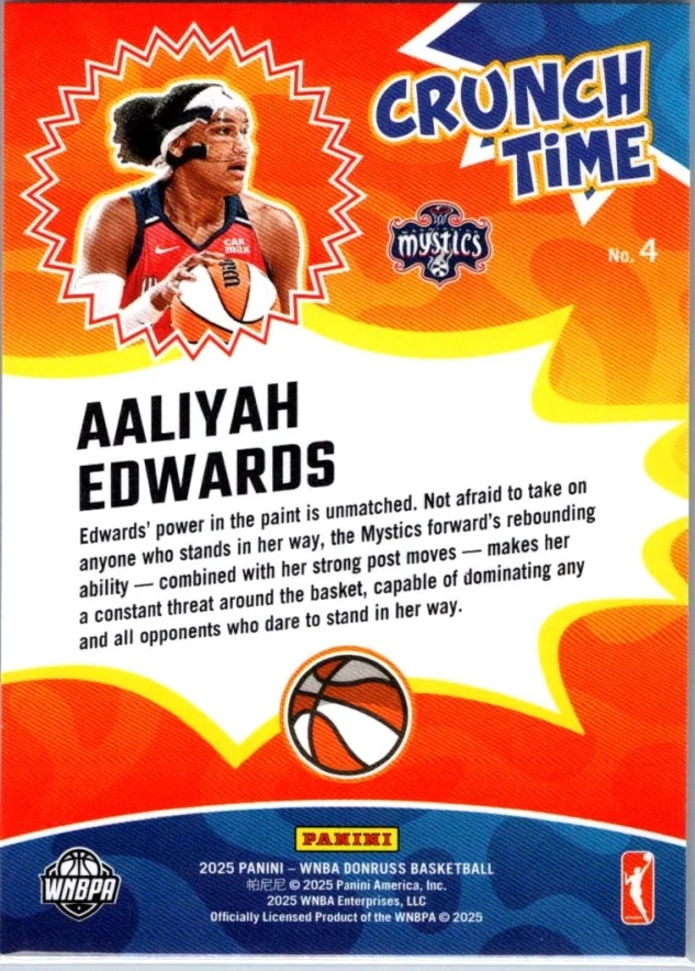 This is a nice example of a 2025 Donruss WNBA #4 Aaliyah Edwards Crunch Time