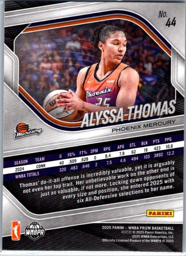 This is a nice example of a 2025 Panini Prizm WNBA #44 Alyssa Thomas