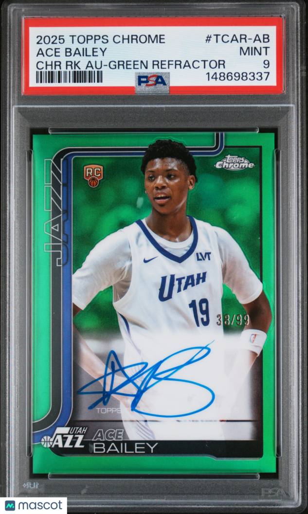 You are purchasing a 2025 Topps Chrome Chrome Rookie Autographs Ace Bailey #TCAR-AB RK Green Refractor 38/99 PSA 9. You will receive the exact item in the photographs. Thank you for looking.