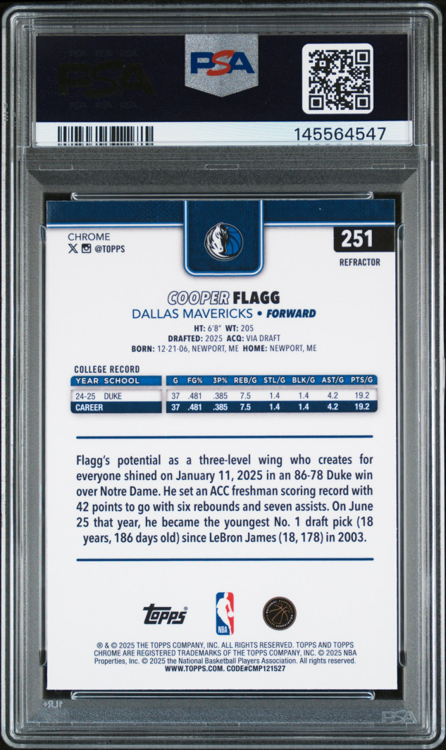 PSA 10 Cooper Flagg Rookie Refractor