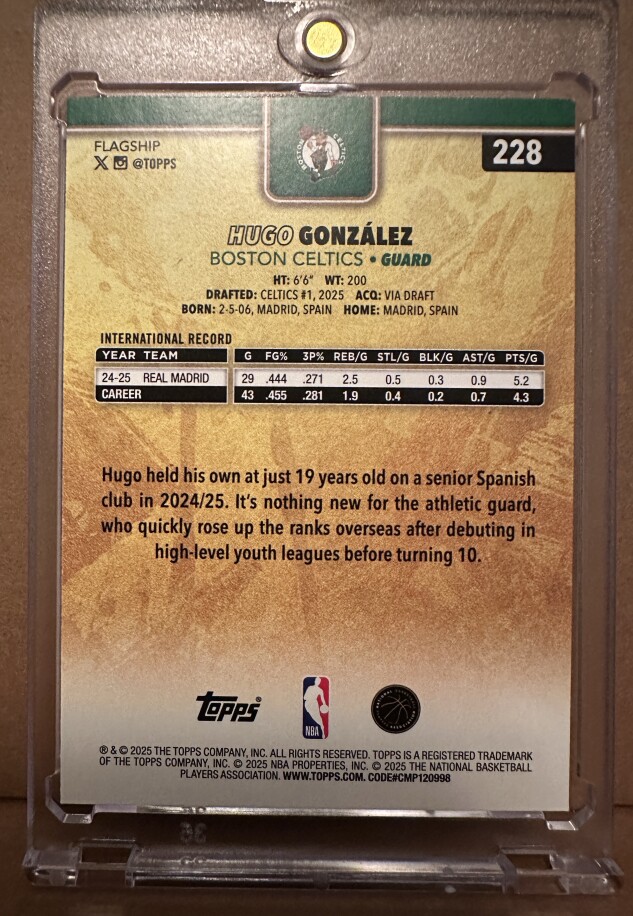 This is an early rookie of one of the top international prospects out of Spain—huge upside as he develops with Boston.