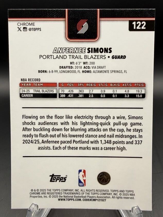 Anfernee Simons 2025-26 Topps Chrome #122