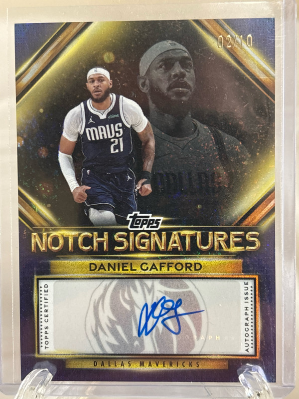 This is a Daniel Gafford 2025 Topps Notch Signatures Holo Black Foil Auto numbered 02/10 in near mint/mint condition.